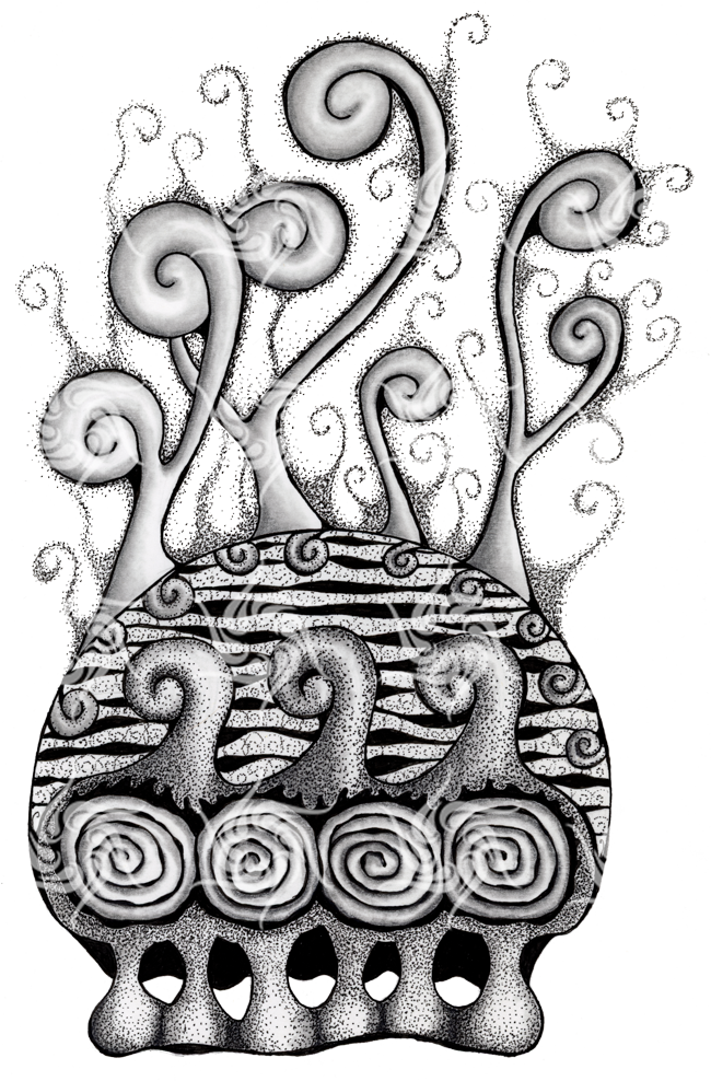 My creations are hand drawn. I use primarily black ink, alcohol markers, colored pencils and graphite.