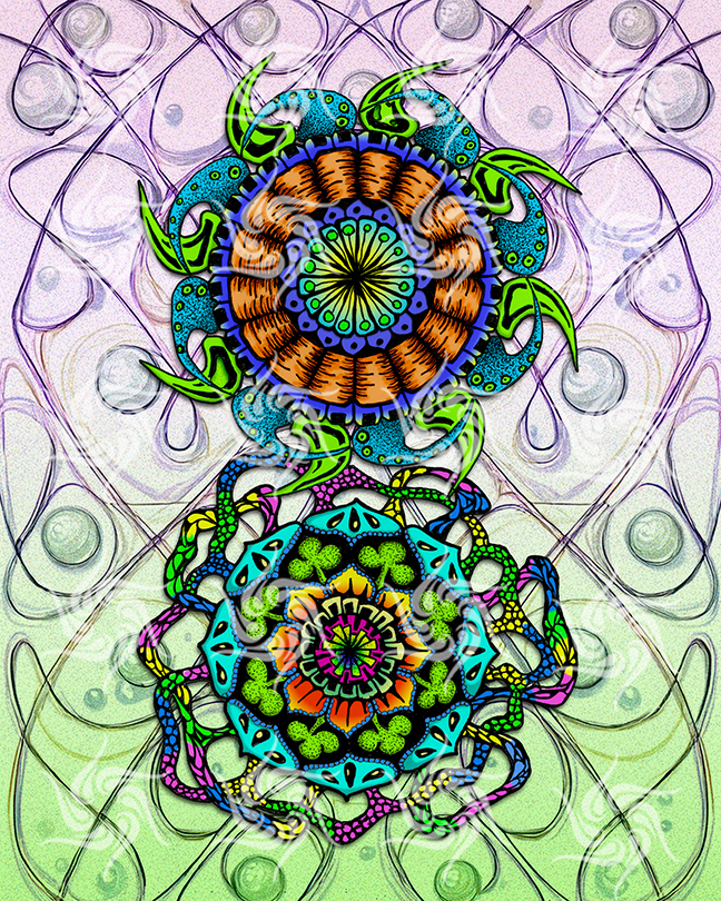 My inspiration comes from the letting-go of internal and external expectations and the flow state of just being in the present moment; that place where time ceases to exist and we are free from all that defines us. Creativity has always been a part of my life. We are all connected. Connection and connectivity are themes present throughout most of my visual art. I believe connection is at the heart of creation. I hope my designs inspire you to look inward, listen deeply and move forward with an inner knowing that all is well, and that you are loved, unique and divine.